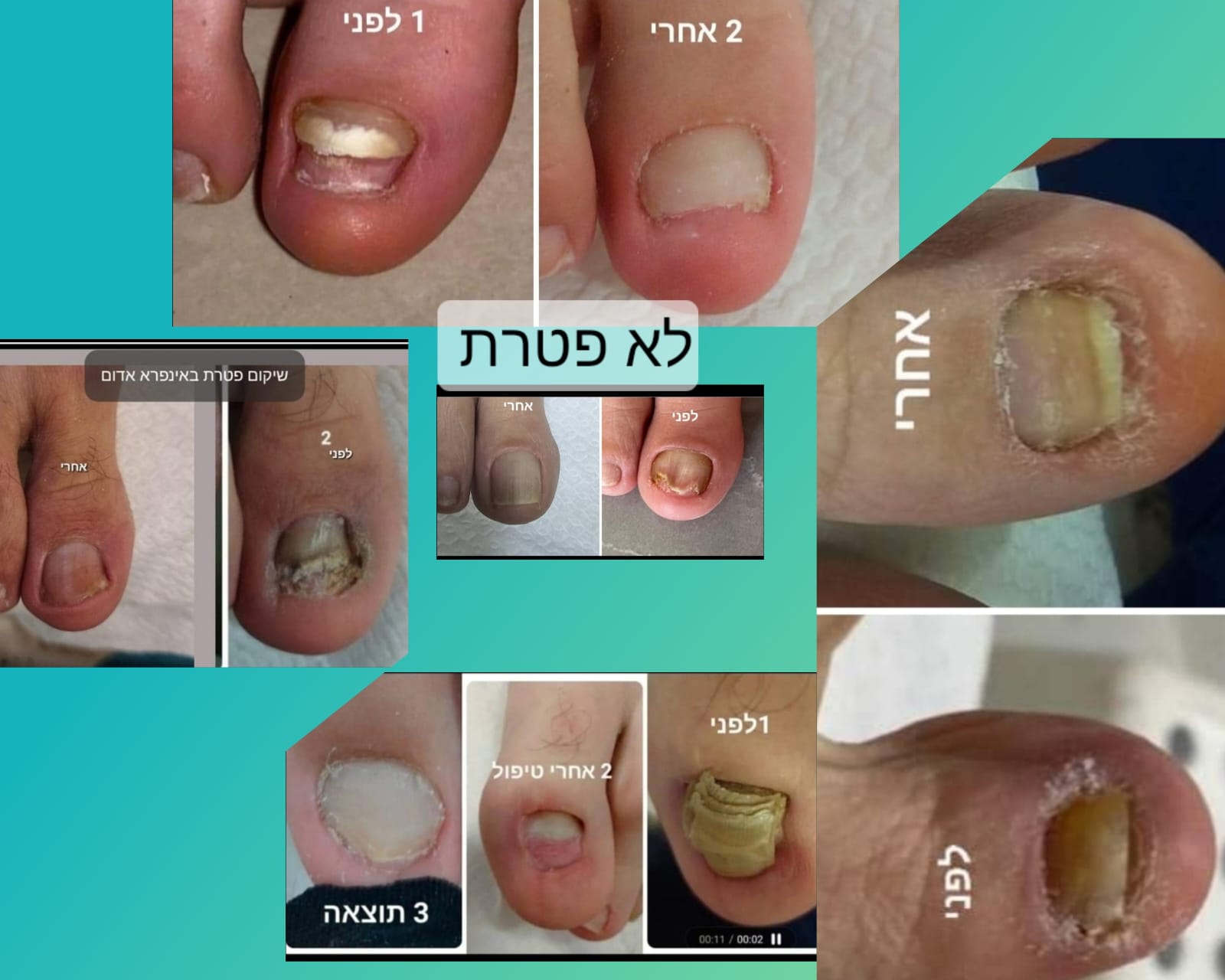 דבר נוסף לא כל פטרת ניתן לתת לה מענה ועם מישהו מבטיח לכם 100%תוצאת הוא לא דובר אמת .כי זה תלוי בוותק הפטרת הגיל של המטופל ומצב בריאותי שלו